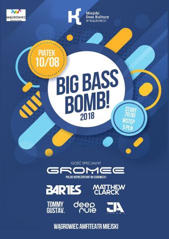 Już w Piątek 10.08.2018 roku mamy przyjemność zaprosić Was wraz z Miejskim Domem Kultury w Wągrowcu na drugą edycję imprezy BIG BASS BOMB 2018 w Amfiteatrze przy Plaży Miejskiej w Wągrowcu!!! Prawdziwa śmietanka polskiej muzyki klubowej w jednym miejscu!!! Gwiazdą główną tego wieczoru: GROMEE - polski reprezentant na Eurowizji 2018 oraz najlepsi reprezentanci polskiej muzyki klubowej!!!